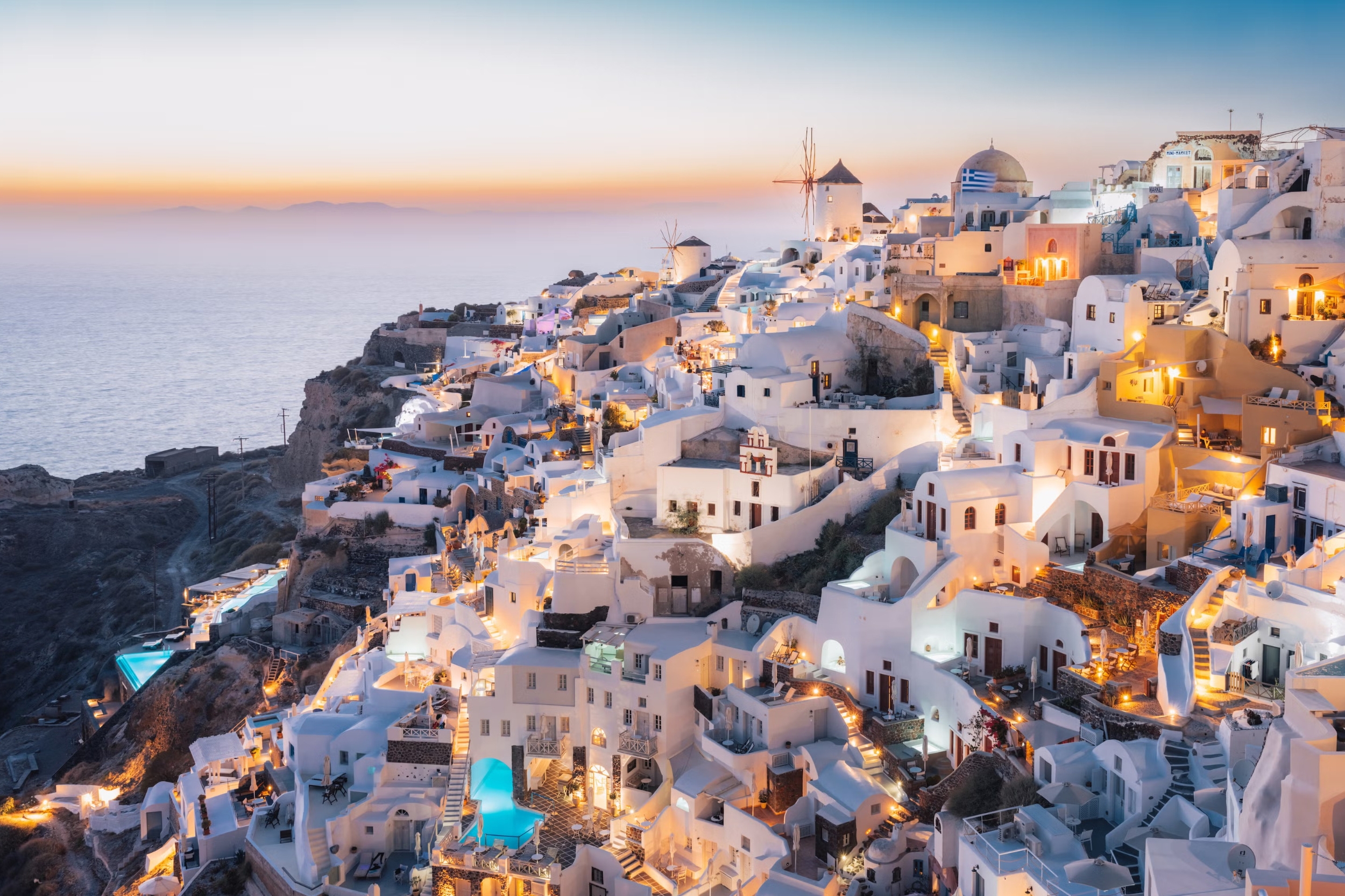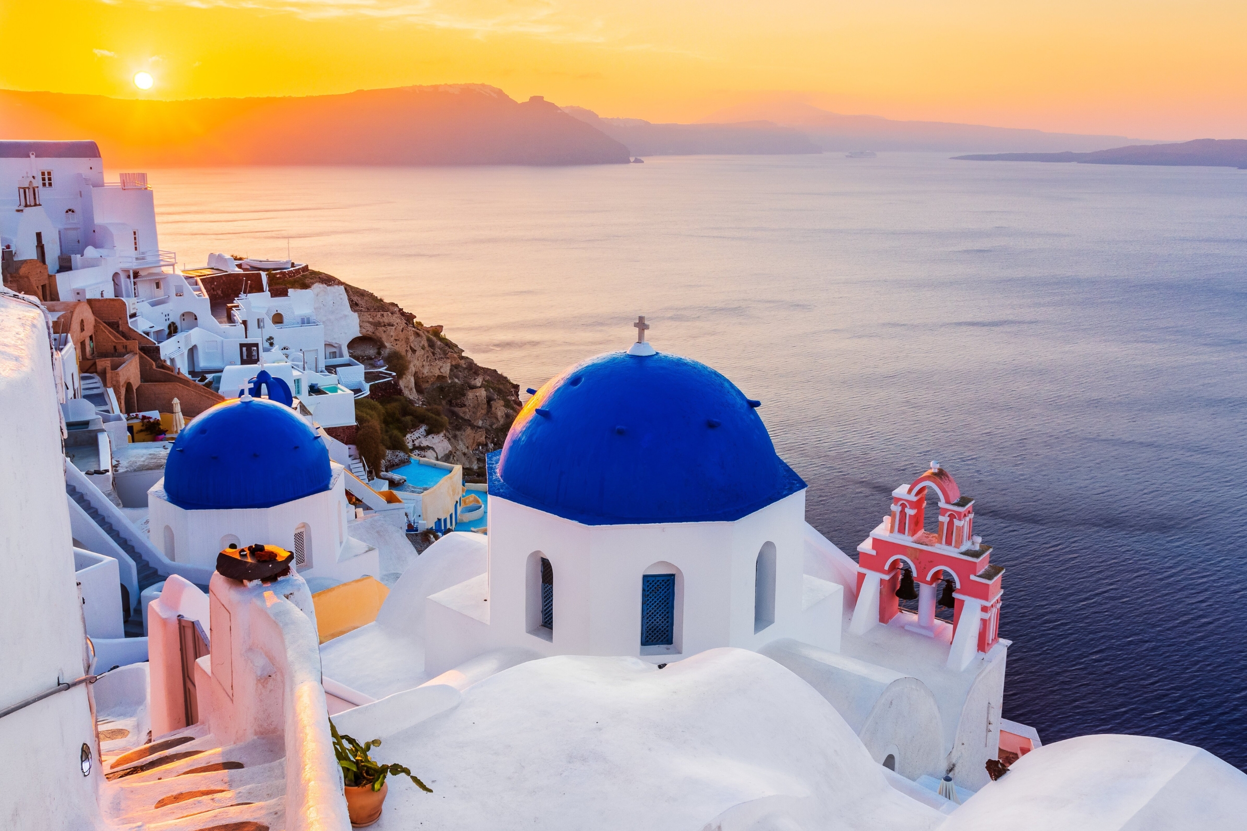 The island is defined by its cliffside villages, including Oia and Fira, where white buildings, narrow pathways and blue-domed churches overlook the sea. This unique architectural style, combined with the natural formation of the caldera, gives Santorini its distinctive identity and timeless appeal.